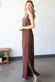 First Love Tie Back Sleeveless Slit Wide Leg Jumpsuit