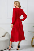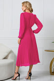 V-Neck Long Sleeve Tie Waist Midi Dress