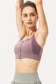 Zip-Up Round Neck Sports Bra